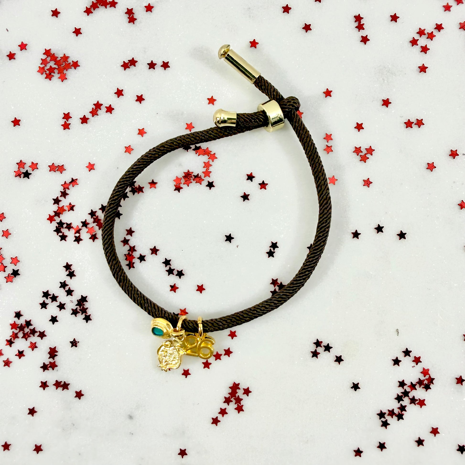 💫 lucky charm βραχιόλι με καφέ κορδόνι